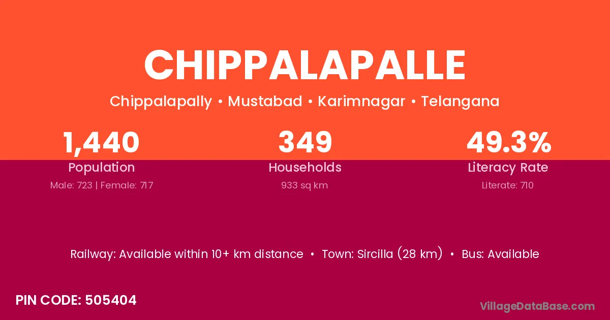 Sircilla (28 km) is the nearest town to Chippalapalle village for major economic activities and is located approximately 28 km away.