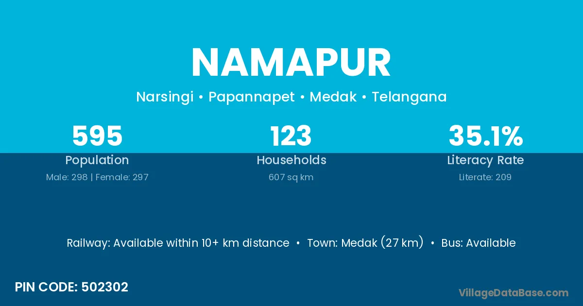 Sircilla (18 km) is the nearest town to Namapur village for major economic activities and is located approximately 18 km away.