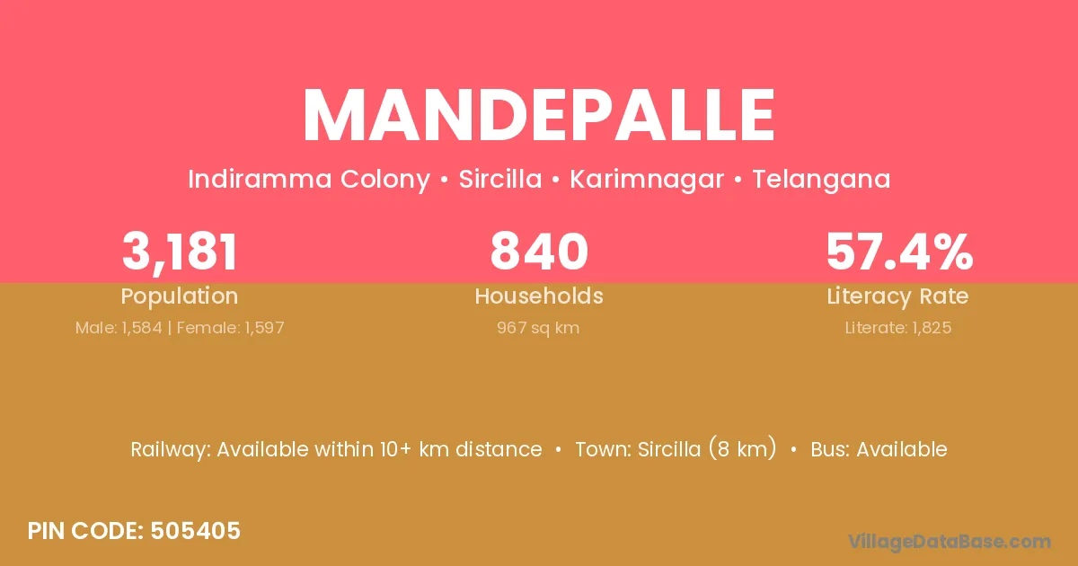 Sircilla (8 km) is the nearest town to Mandepalle village for major economic activities and is located approximately 8 km away.