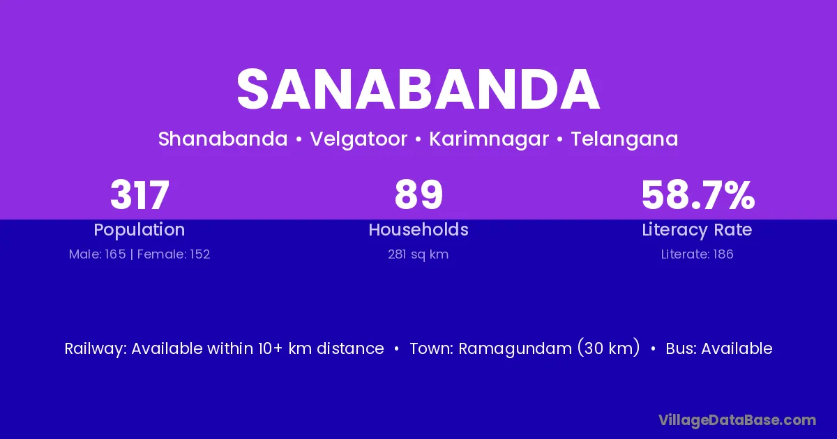 Ramagundam (30 km) is the nearest town to Sanabanda village for major economic activities and is located approximately 30 km away.