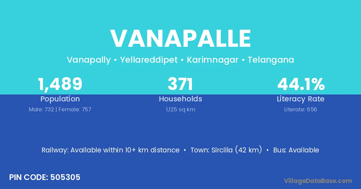 Sircilla (42 km) is the nearest town to Vanapalle village for major economic activities and is located approximately 42 km away.