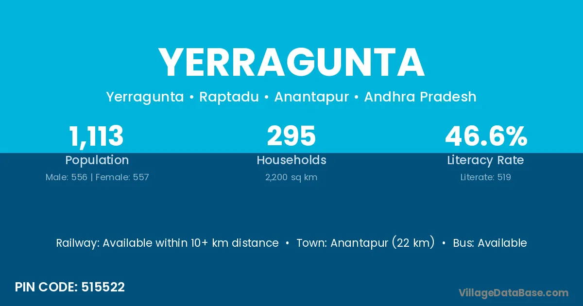 Yerragunta village has a total population of 302 people, of which 151 are males and 151 are females.