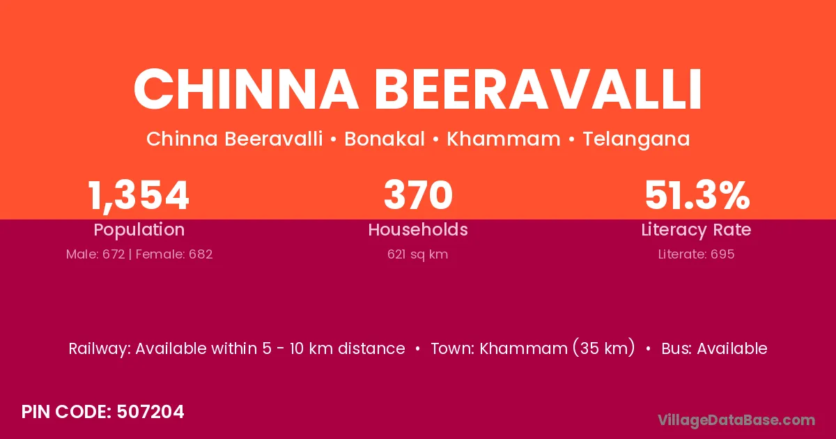 Khammam (35 km) is the nearest town to Chinna Beeravalli village for major economic activities and is located approximately 35 km away.