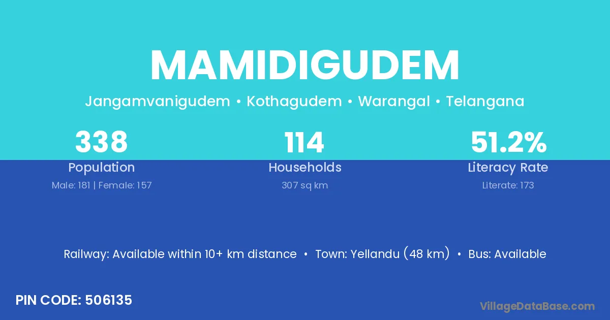 Manuguru (14 km) is the nearest town to Mamidigudem village for major economic activities and is located approximately 14 km away.