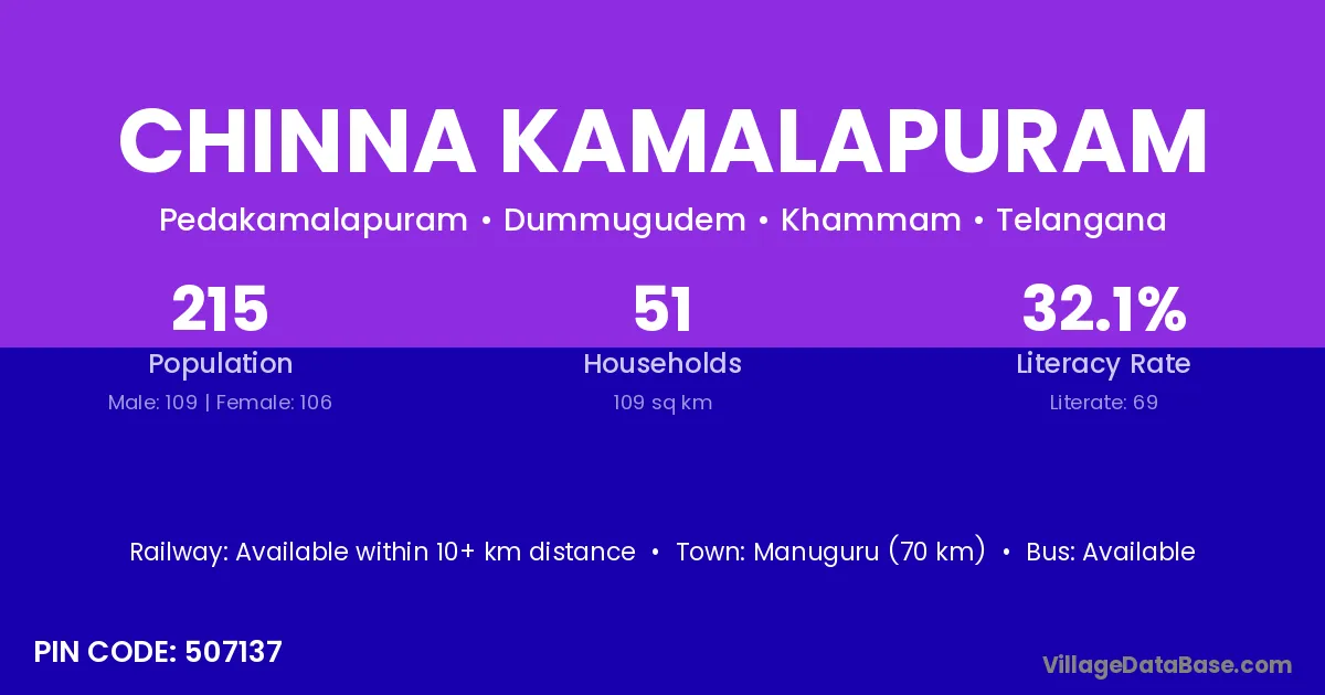 Chinna Kamalapuram village has a total population of 215 people, of which 109 are males and 106 are females.