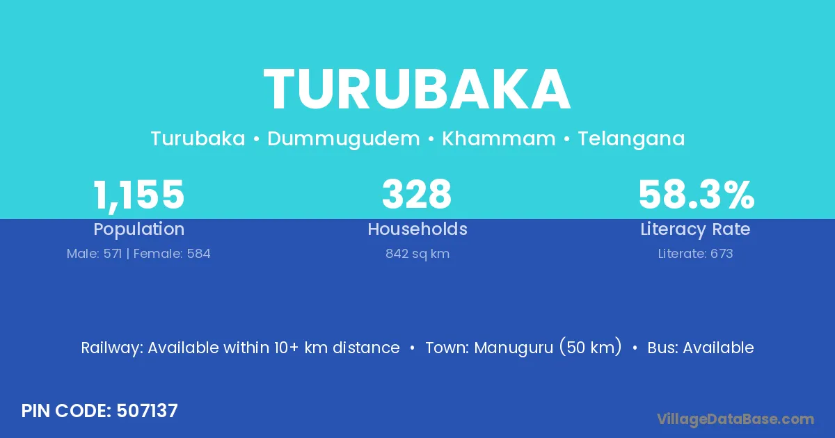 Turubaka village has a total population of 1,155 people, of which 571 are males and 584 are females.