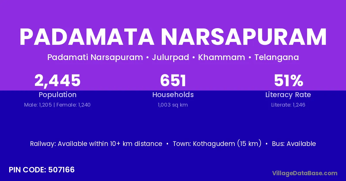 Padamata Narsapuram village is located in the Julurpad Mandal of the Khammam district in Telangana .