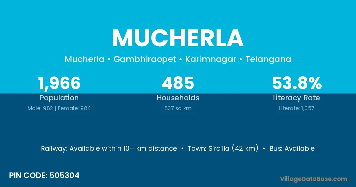 According to Census 2011 information, the village code of Mucherla village is 507182.