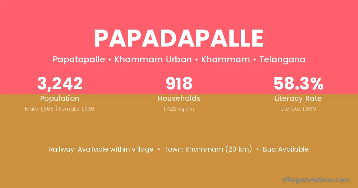 Khammam (20 km) is the nearest town to Papadapalle village for major economic activities and is located approximately 20 km away.