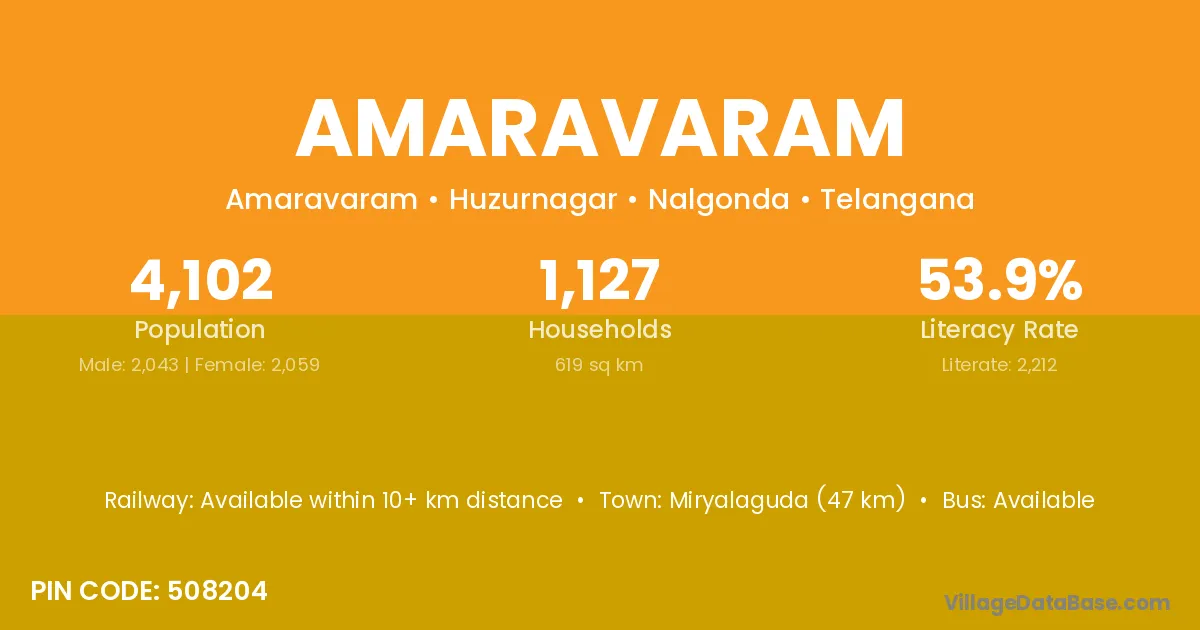 Palwancha (41 km) is the nearest town to Amaravaram village for major economic activities and is located approximately 41 km away.