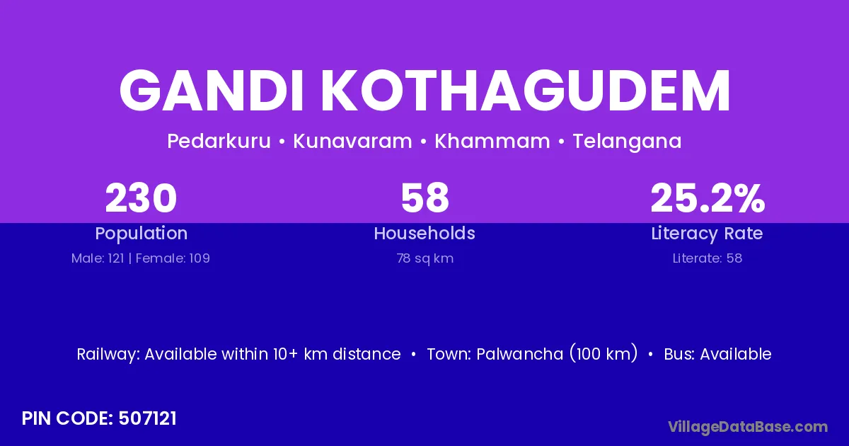 Gandi Kothagudem village has a total population of 230 people, of which 121 are males and 109 are females.