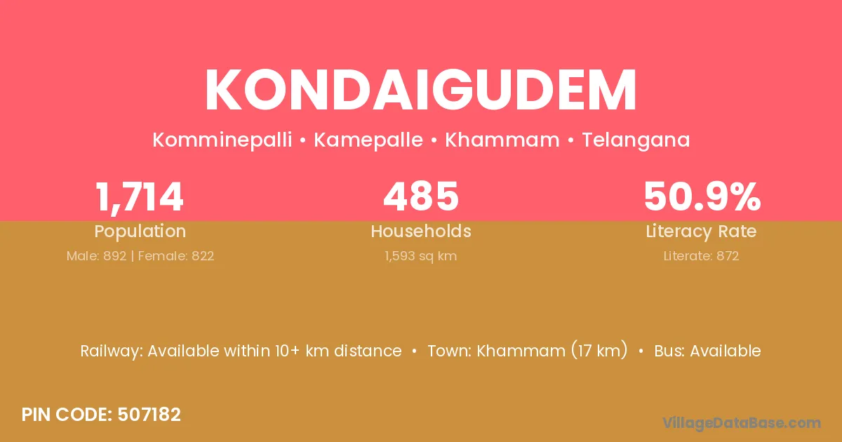 According to Census 2011 information, the village code of Kondaigudem village is 507121.