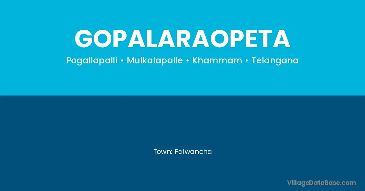 Palwancha is the nearest town to Gopalaraopeta village for major economic activities