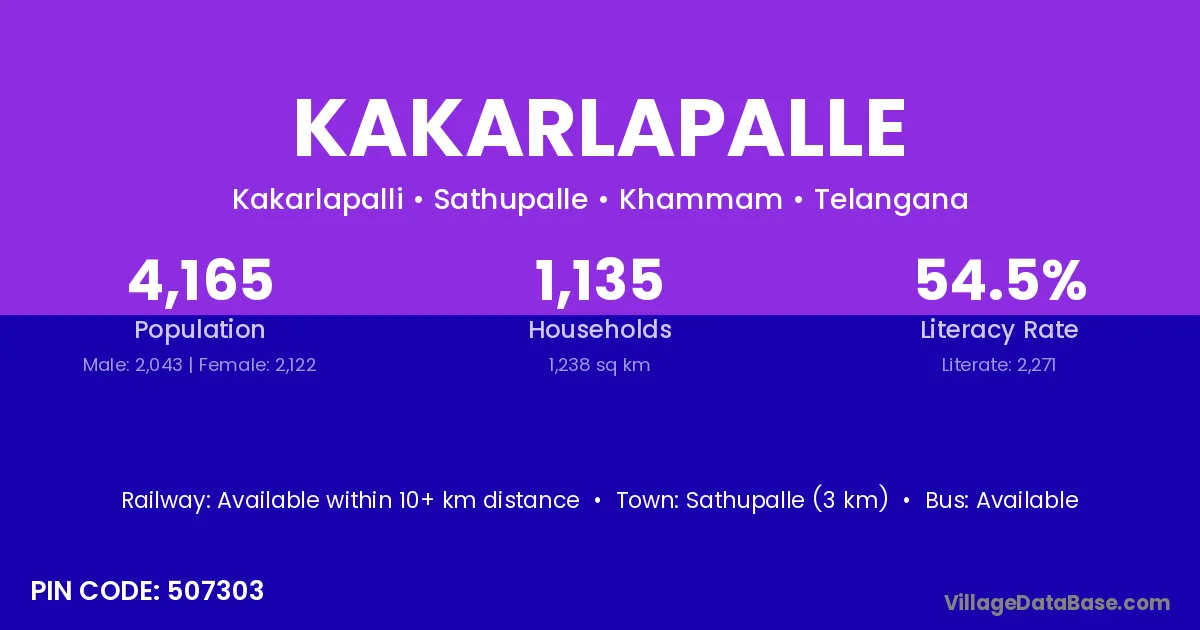 Sathupalle (3 km) is the nearest town to Kakarlapalle village for major economic activities and is located approximately 3 km away.