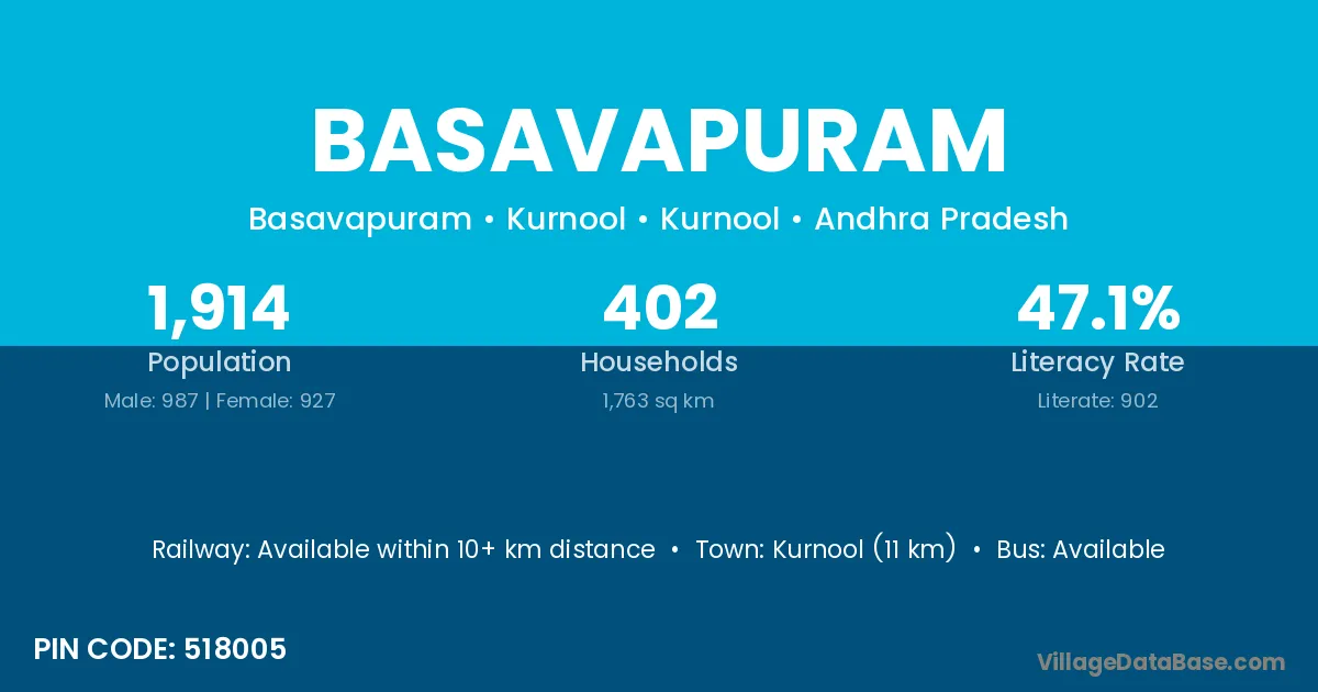 Basavapuram village has a total population of 999 people, of which 504 are males and 495 are females.