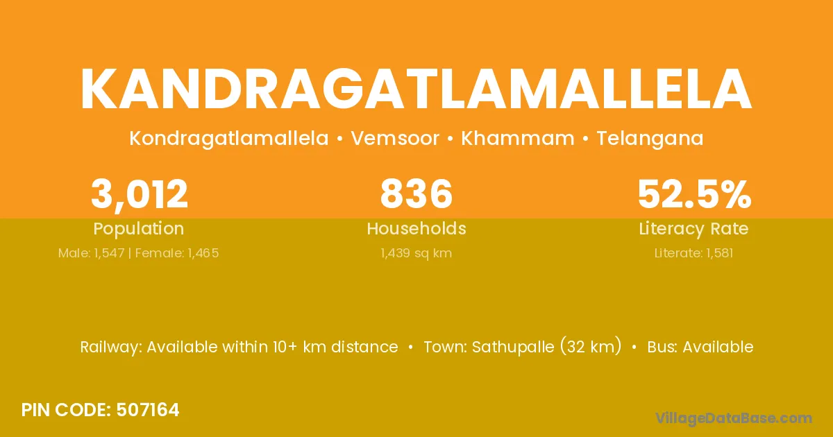 Sathupalle (32 km) is the nearest town to Kandragatlamallela village for major economic activities and is located approximately 32 km away.