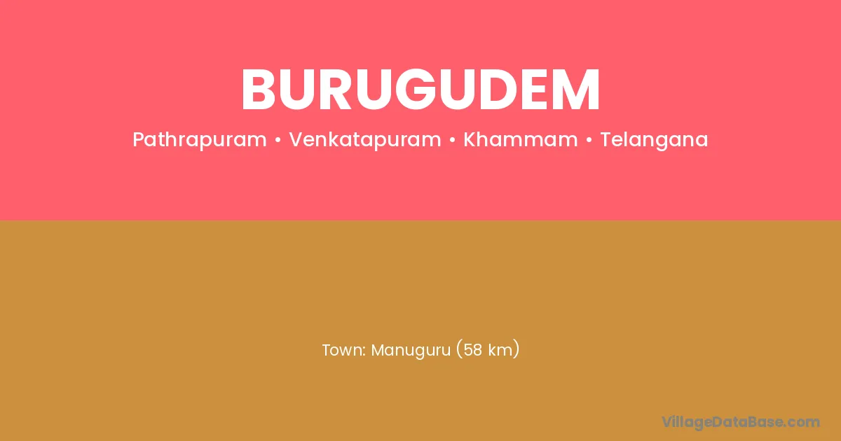 Manuguru (58 km) is the nearest town to Burugudem village for major economic activities and is located approximately 58 km away.