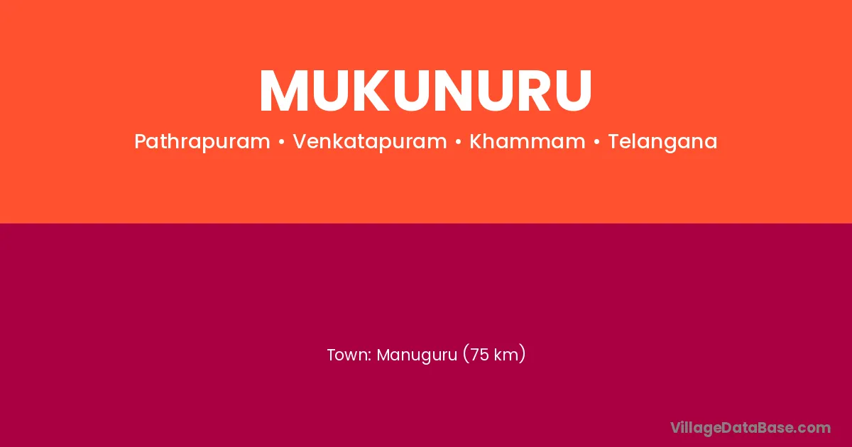 Manuguru (75 km) is the nearest town to Mukunuru village for major economic activities and is located approximately 75 km away.