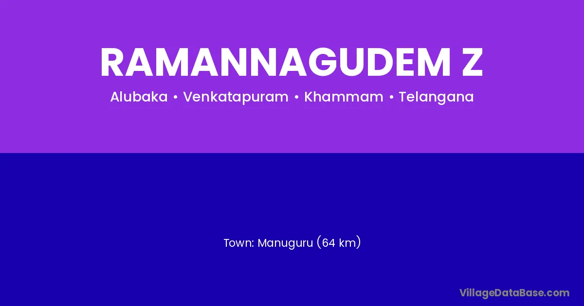 Manuguru (64 km) is the nearest town to Ramannagudem Z village for major economic activities and is located approximately 64 km away.
