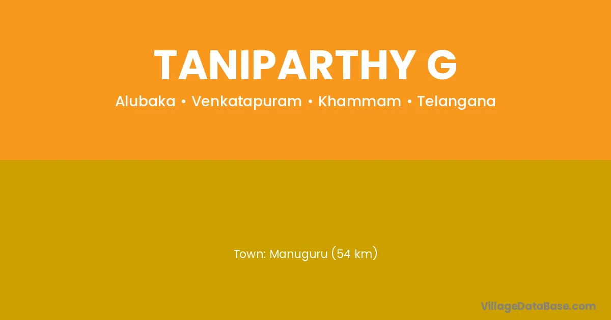 Manuguru (54 km) is the nearest town to Taniparthy G village for major economic activities and is located approximately 54 km away.
