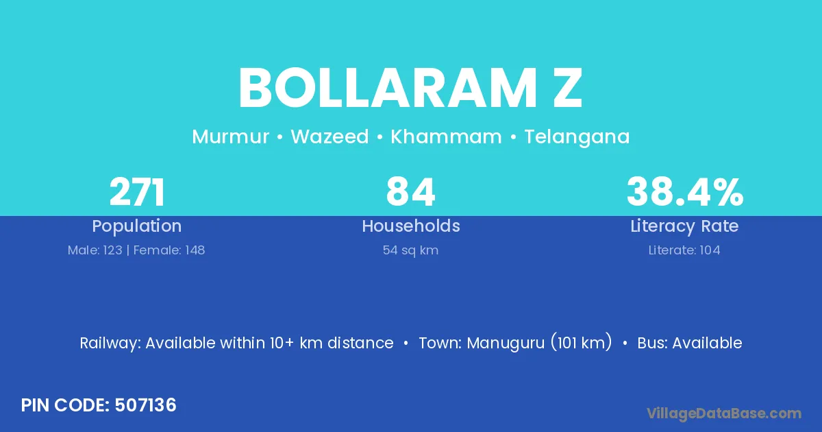 Bollaram Z village has a total population of 271 people, of which 123 are males and 148 are females.