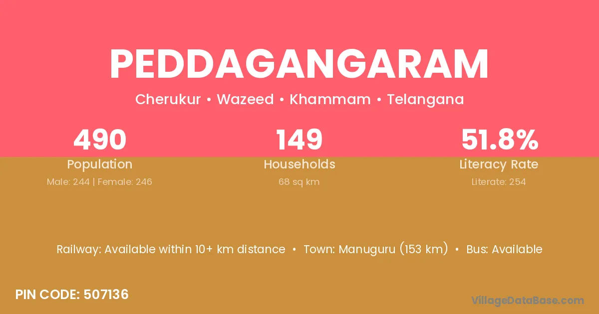Peddagangaram village has a total population of 490 people, of which 244 are males and 246 are females.