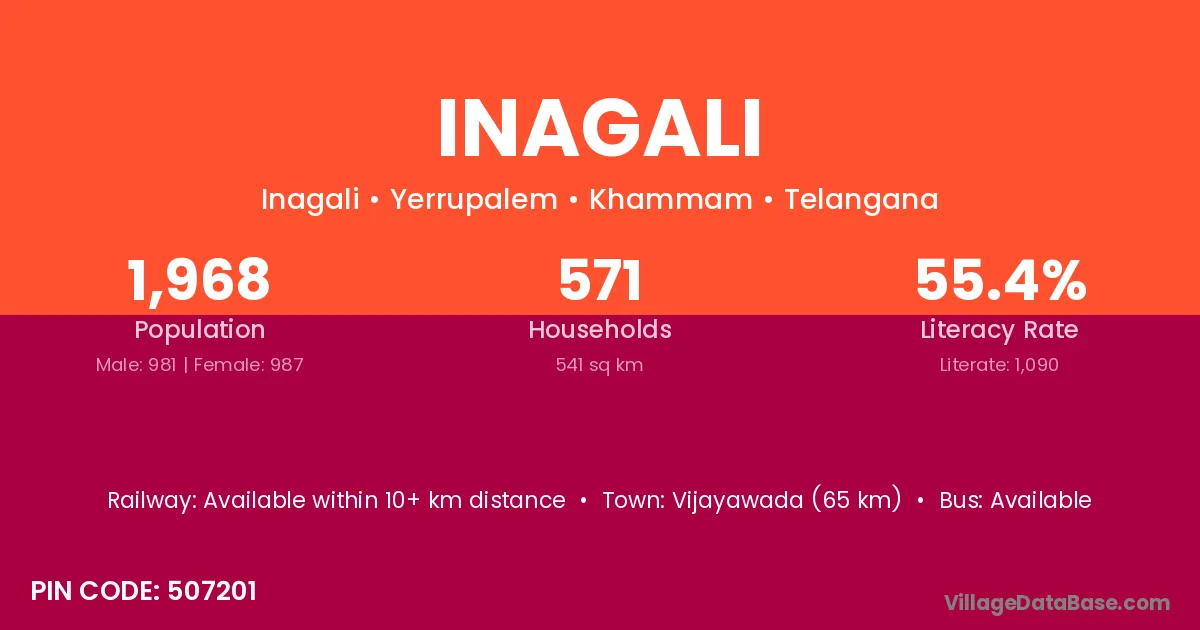 Vijayawada (65 km) is the nearest town to Inagali village for major economic activities and is located approximately 65 km away.