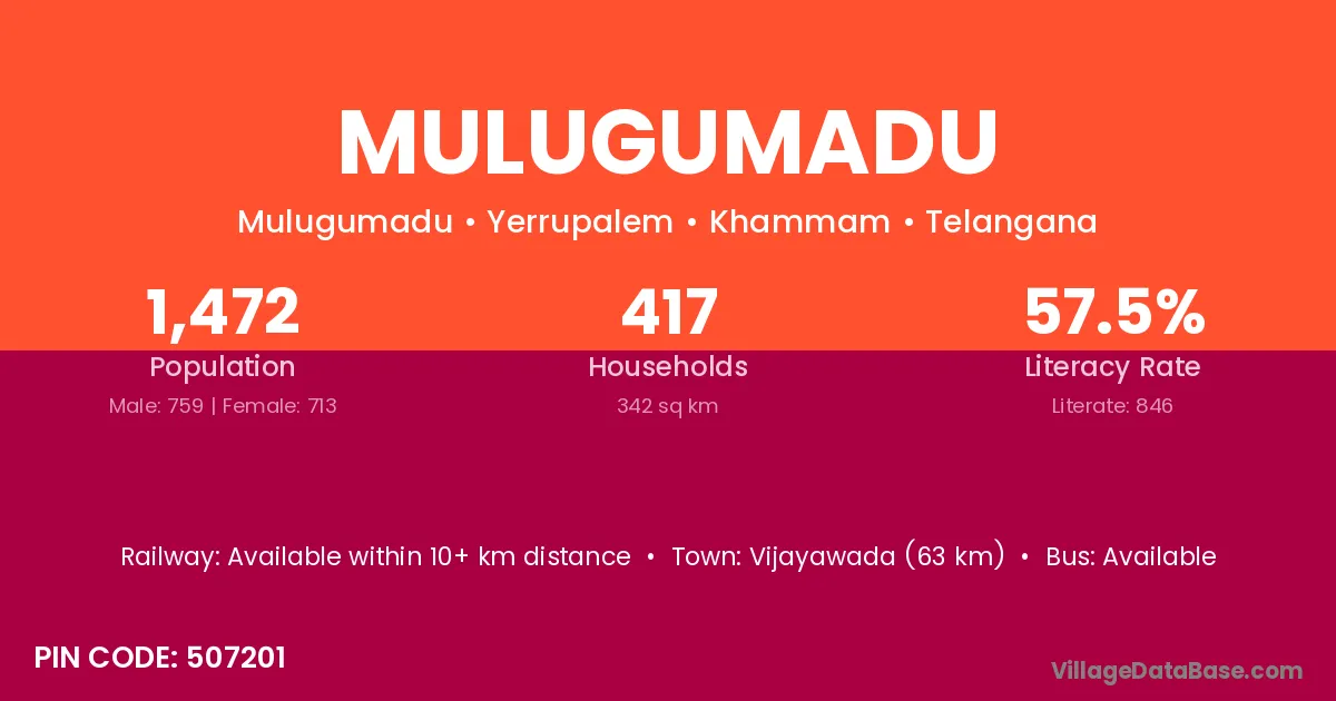 Vijayawada (63 km) is the nearest town to Mulugumadu village for major economic activities and is located approximately 63 km away.