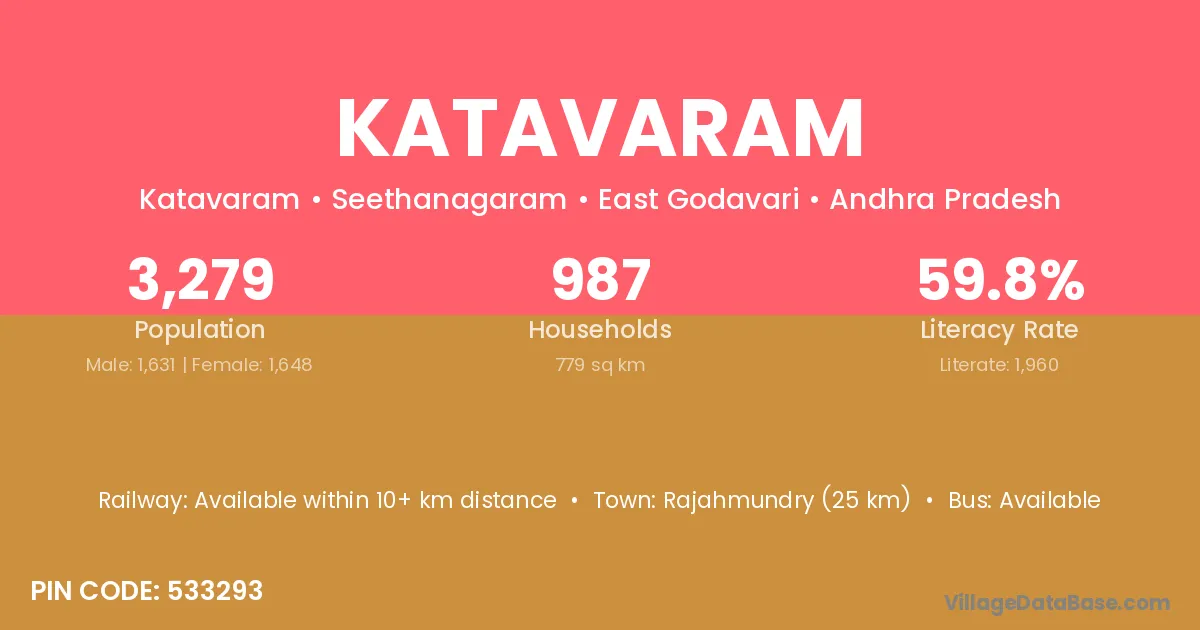 The literacy rate of Katavaram village is 36.85%. Male literacy stands at 44.70% and female literacy at 29.23%.