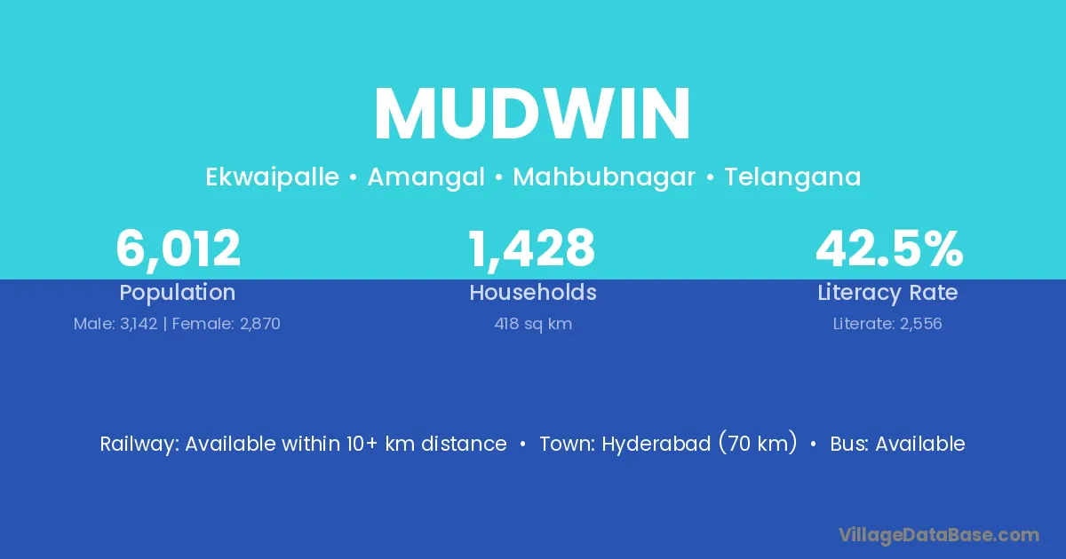 Hyderabad (70 km) is the nearest town to Mudwin village for major economic activities and is located approximately 70 km away.