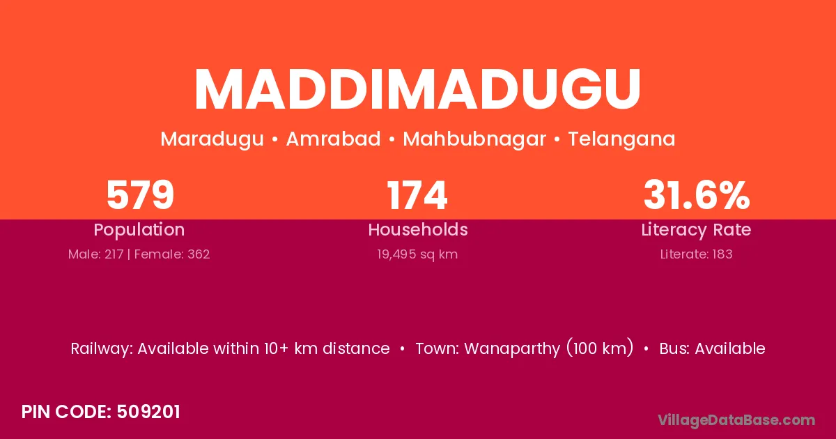 According to Census 2011 information, the village code of Maddimadugu village is 509201.