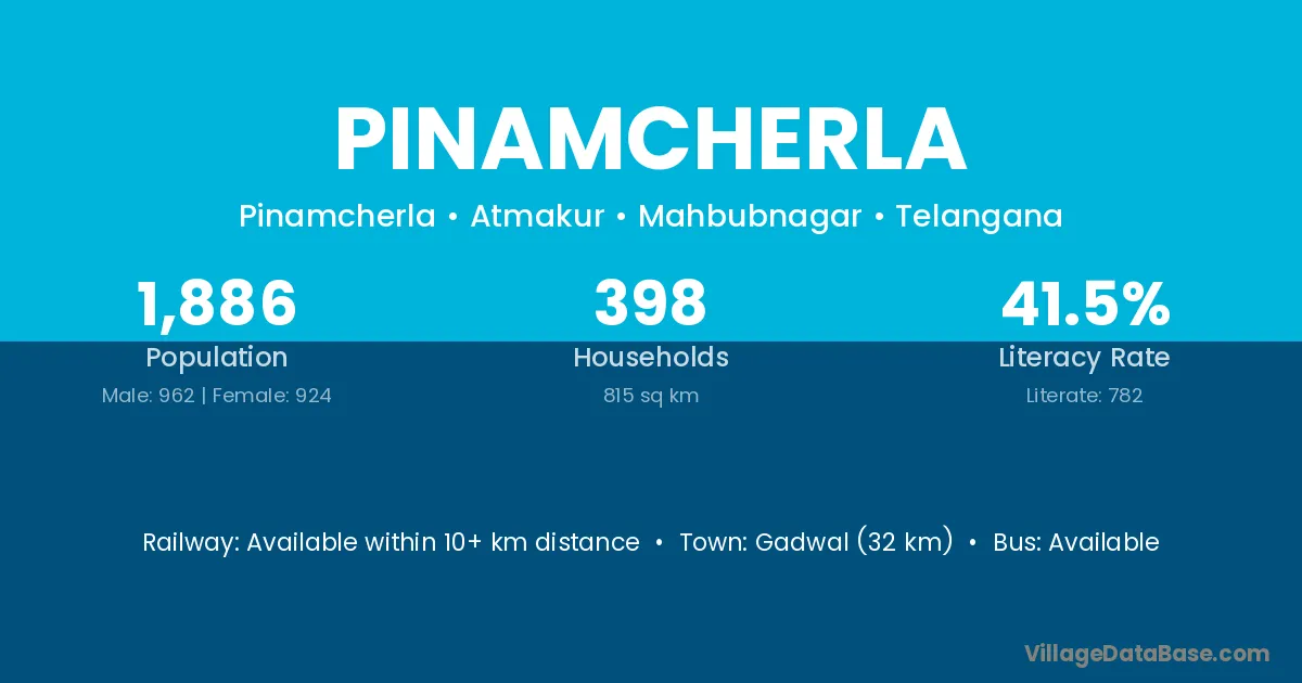 Gadwal (32 km) is the nearest town to Pinamcherla village for major economic activities and is located approximately 32 km away.