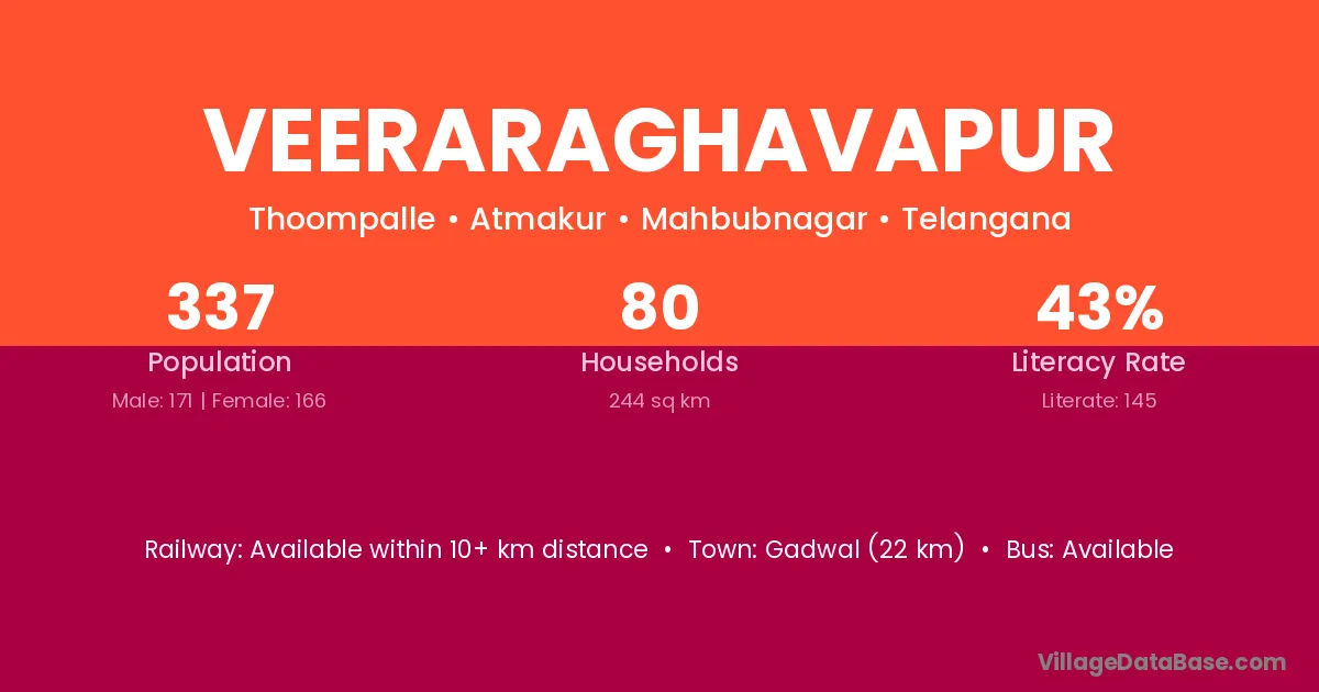 Gadwal (22 km) is the nearest town to Veeraraghavapur village for major economic activities and is located approximately 22 km away.