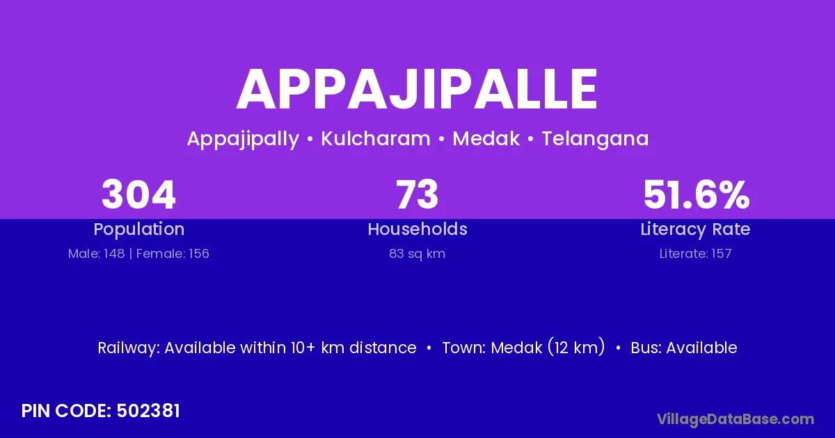 Mahbubnagar (41 km) is the nearest town to Appajipalle village for major economic activities and is located approximately 41 km away.
