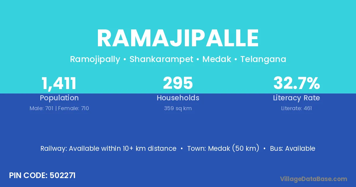The literacy rate of Ramajipalle village is 52.77%. Male literacy stands at 61.91% and female literacy at 42.59%.