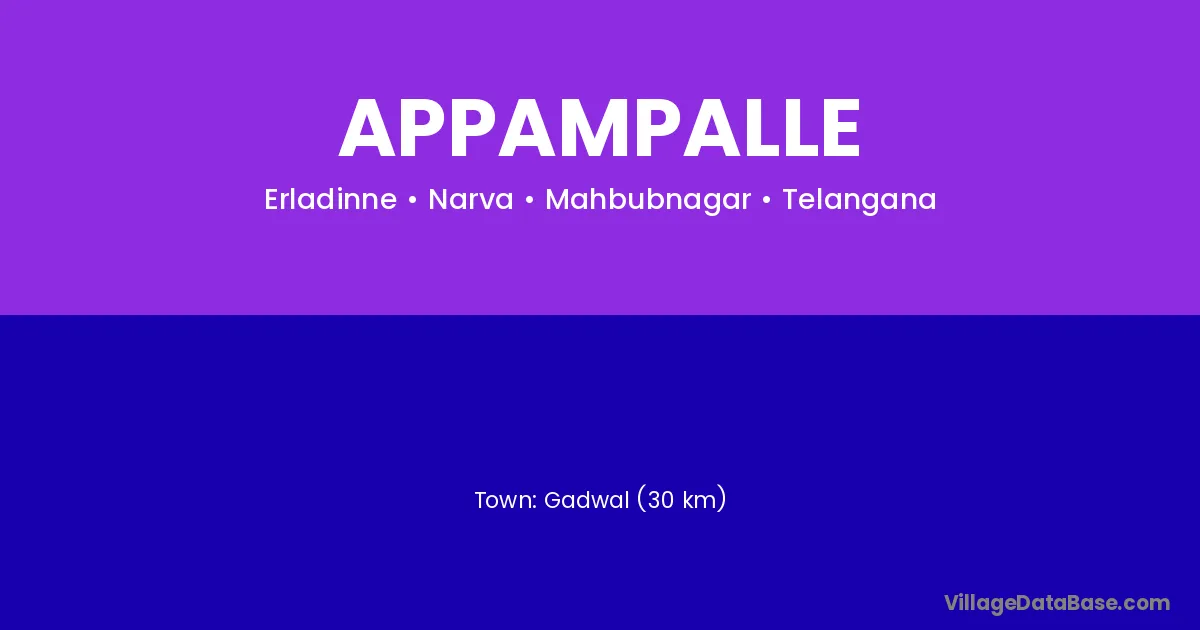 Gadwal (30 km) is the nearest town to Appampalle village for major economic activities and is located approximately 30 km away.