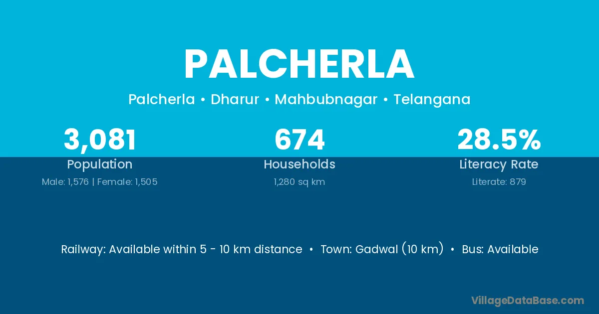 Gadwal (10 km) is the nearest town to Palcherla village for major economic activities and is located approximately 10 km away.