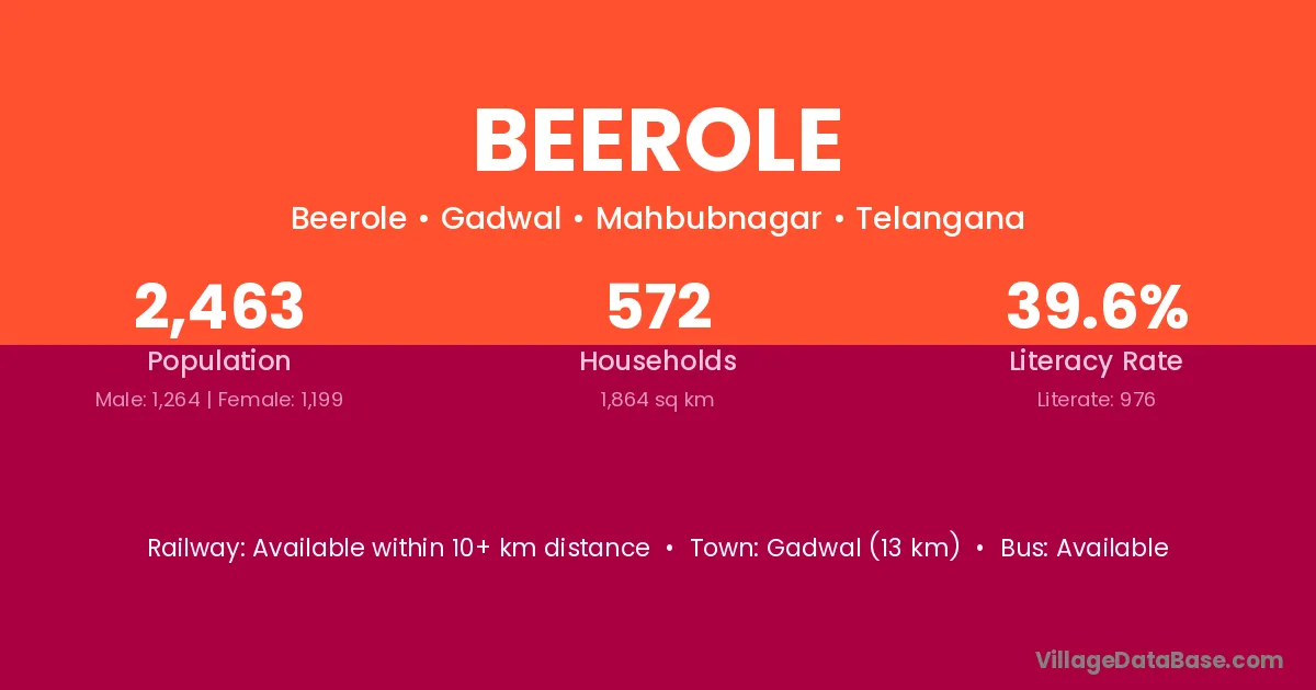 Gadwal (13 km) is the nearest town to Beerole village for major economic activities and is located approximately 13 km away.
