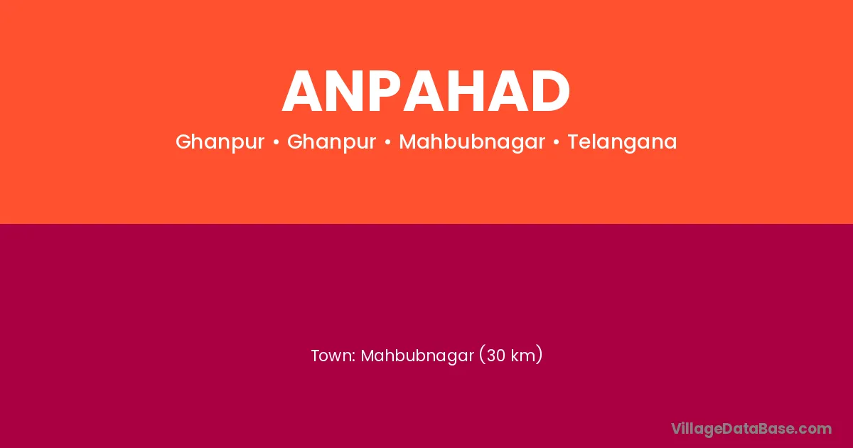 Mahbubnagar (30 km) is the nearest town to Anpahad village for major economic activities and is located approximately 30 km away.
