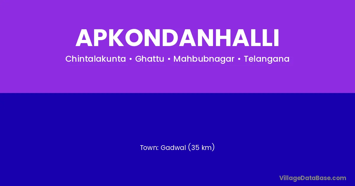 Gadwal (35 km) is the nearest town to Apkondanhalli village for major economic activities and is located approximately 35 km away.
