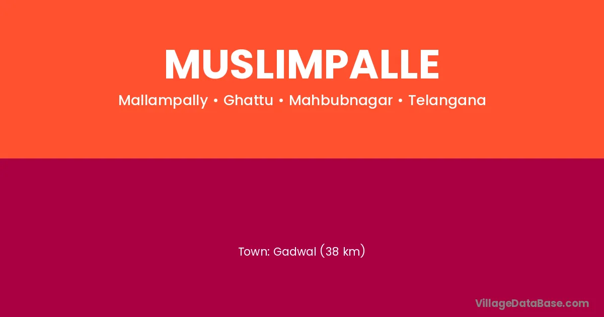 Gadwal (38 km) is the nearest town to Muslimpalle village for major economic activities and is located approximately 38 km away.