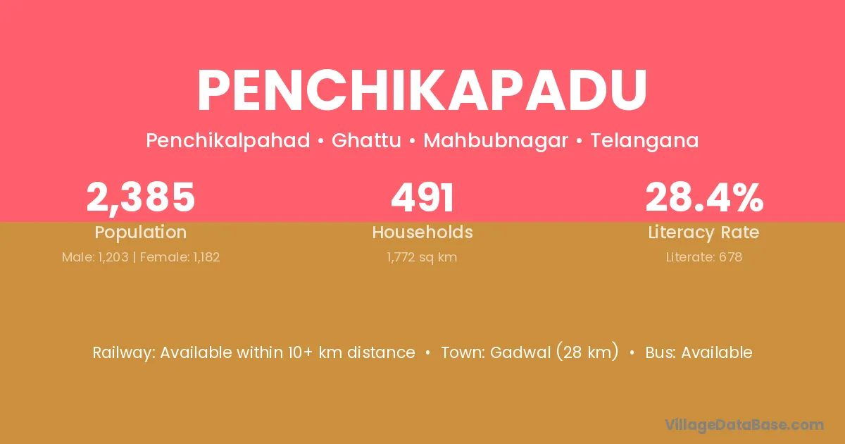 Gadwal (28 km) is the nearest town to Penchikapadu village for major economic activities and is located approximately 28 km away.