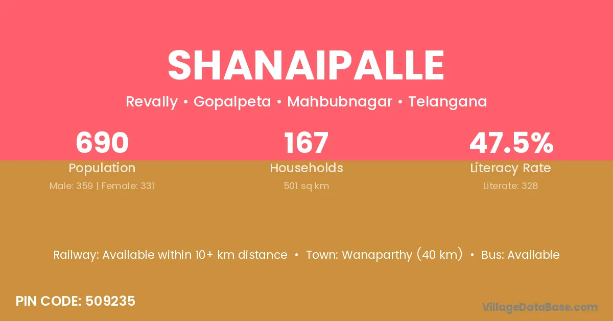 Wanaparthy (40 km) is the nearest town to Shanaipalle village for major economic activities and is located approximately 40 km away.