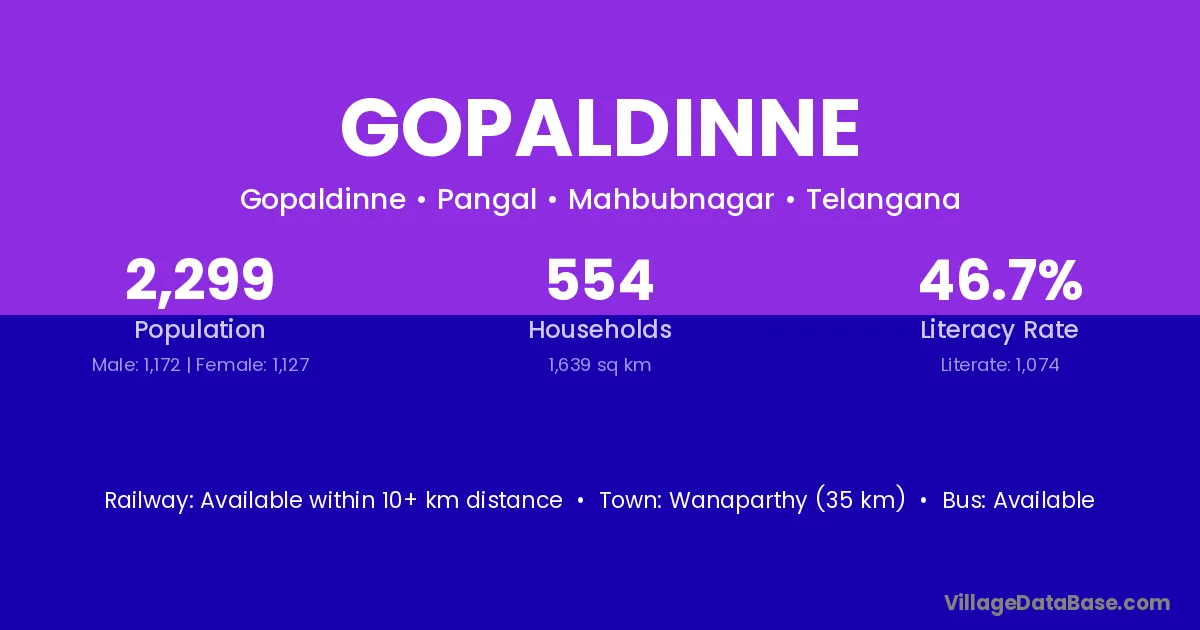 Gadwal (15 km) is the nearest town to Gopaldinne village for major economic activities and is located approximately 15 km away.