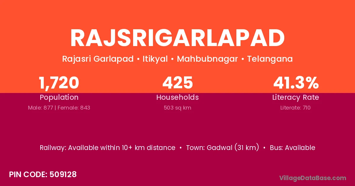 Gadwal (31 km) is the nearest town to Rajsrigarlapad village for major economic activities and is located approximately 31 km away.