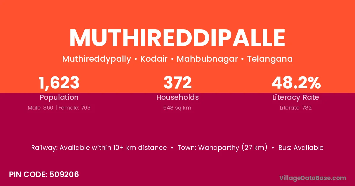 Wanaparthy (27 km) is the nearest town to Muthireddipalle village for major economic activities and is located approximately 27 km away.