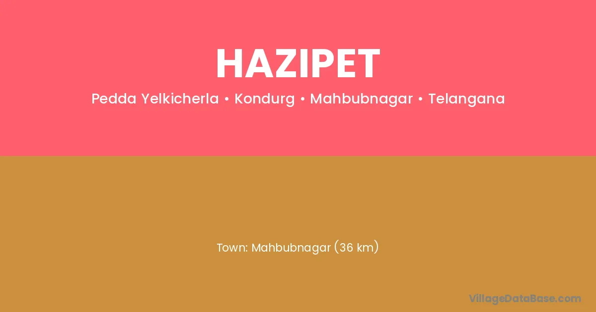 Mahbubnagar (36 km) is the nearest town to Hazipet village for major economic activities and is located approximately 36 km away.