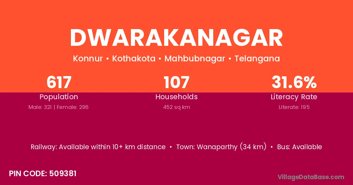 Wanaparthy (34 km) is the nearest town to Dwarakanagar village for major economic activities and is located approximately 34 km away.