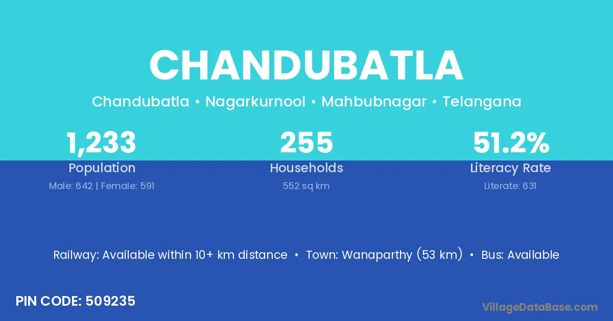 Wanaparthy (53 km) is the nearest town to Chandubatla village for major economic activities and is located approximately 53 km away.