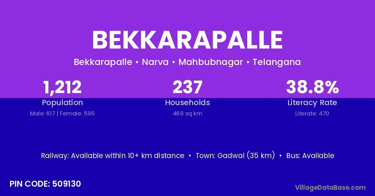 Gadwal (35 km) is the nearest town to Bekkarapalle village for major economic activities and is located approximately 35 km away.
